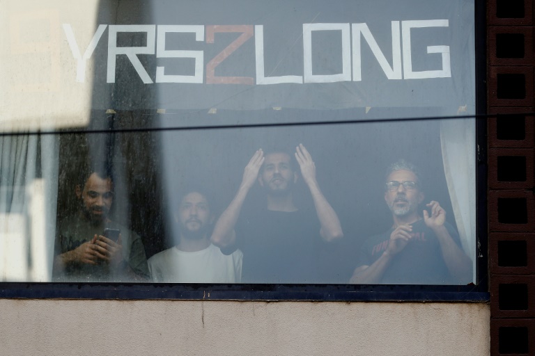 Une poignée de manifestants se sont rassemblés dimanche matin en bas du centre de rétention, où des centaines de supporters, de manifestants anti-vaccination et de militants pour les droits des migrants s'étaient déjà regroupés la veille dans une ambiance festive.