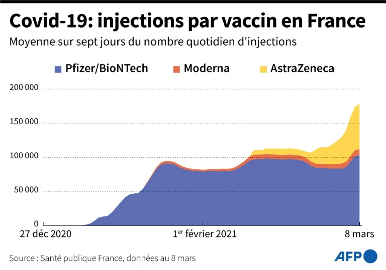 Parallèlement, le gouvernement tente de calmer la grogne des médecins libéraux, après la décision du ministère de la Santé les privant de commandes de doses cette semaine au profit des pharmaciens, qui commenceront à vacciner le 15 mars. Le Premier ministre Jean Castex les a assuré mercredi qu'1,1 million de doses supplémentaires "seraient disponibles à la fin de la semaine".