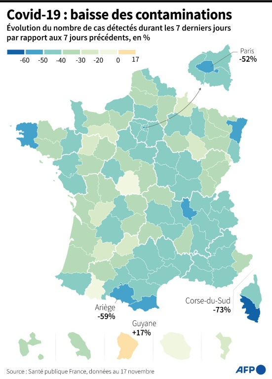Mais la question de la réouverture des commerces dits "non essentiels" n'est pas encore tranchée: ils doivent pour l'instant se contenter de ventes en ligne et sur rendez-vous, et réclament une reprise dès le 27 novembre, jour de la gigantesque opération commerciale du "Black Friday".
