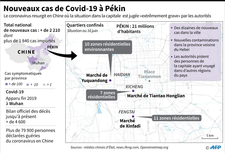 Ce regain de contagion est parti de l'immense marché de gros de Xinfadi, dans le sud de la capitale, où le coronavirus a été repéré la semaine dernière. Des cas ont également été constatés sur d'autres marchés, désormais fermés.