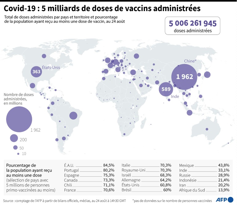 Fin août, environ 60% de la population des pays les plus riches avaient reçu au moins une dose de vaccin anti-Covid, contre seulement 1% des habitants des pays pauvres, selon cette étude. Deux doses sont nécessaires pour une vaccination complète.