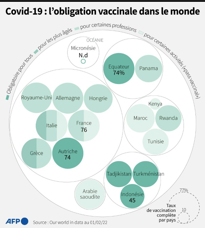 Mais pour le ministre de la Santé Wolfgang Mückstein, la vaccination obligatoire vise à protéger contre "les nouvelles vagues", "à lutter contre les nouveaux variants" qui pourraient apparaître dans les mois à venir. Le pass vaccinal s'impose dans un nombre croissant de pays pour certaines professions ou activités mais la vaccination anti-Covid pour tous demeure, elle, une exception.