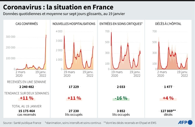 L'exécutif fait face à une situation paradoxale: si le nombre de cas positifs continue à augmenter - et à battre des records à plus de 300.000 contaminations quotidiennes sur la moyenne des sept derniers jours -, la pression sur les services de réanimation tend à décroître.