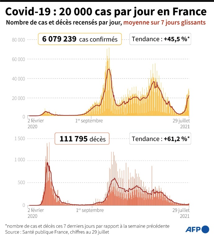 Situation "dramatique" en outre-mer avec La Réunion et la Martinique reconfinées, transfert de patients vers Paris, et inquiétudes en métropole où le variant Delta flambe sur les lieux de vacances: les autorités sont sous tension, à la veille de nouvelles manifestations antipass sanitaire.