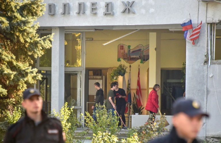 Deux jours après le massacre qui a fait 20 morts dans un lycée de Kertch, en Crimée, la ville rendait vendredi un dernier hommage aux victimes du "Columbine russe", la pire tuerie en milieu scolaire de l'histoire du pays. Une cérémonie d'adieu, en présence des principales autorités de la péninsule annexée par la Russie en 2014, doit débuter à 10H00 (07H00 GMT) sur la place centrale de Kertch. Dans la ville, qui vit au ralenti depuis la tragédie, un important dispositif de sécurité a été mis en place et toutes les artères du centre-ville sont fermées à la circulation. De nombreux habitants convergeaient, fleurs à la main, vers la place ou des couronnes mortuaires en hommage aux 20 victimes ont été déposées.