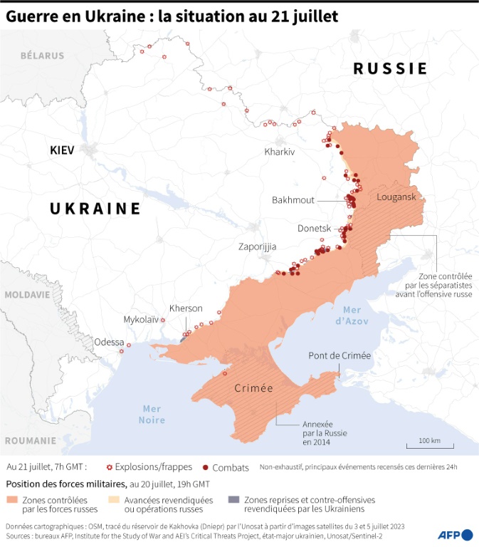 Début juin, Kiev a déclenché une contre-offensive pour reprendre les territoires perdus au profit de Moscou, affirmant en particulier avoir l'intention de récupérer la Crimée, que la Russie a unilatéralement rattachée en 2014 à son territoire.