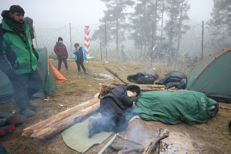 Plus de 2.000 personnes, dont des femmes et des enfants, sont ainsi coincées depuis plusieurs jours dans un camp de fortune du côté bélarusse par un froid glacial, n'ayant que des feux de bois pour se réchauffer.