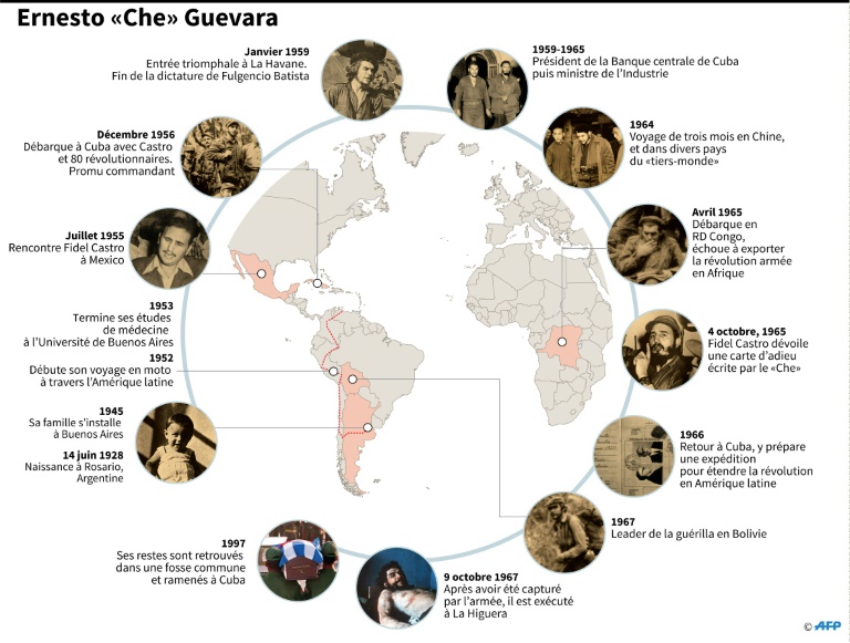 "D'autres terres du monde réclament la contribution de mes modestes efforts", écrira-t-il en 1965 à Fidel Castro en prenant congé pour porter l'insurrection en Afrique notamment. Cette lettre se terminait par une phrase devenue célèbre: "Hasta la victoria, siempre" ("Jusqu'à la victoire, toujours!").