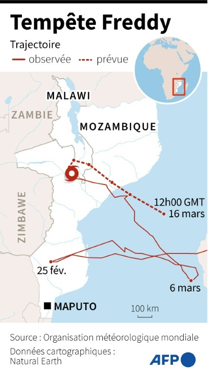 D'une longévité exceptionnelle, Freddy avait déjà frappé l'Afrique australe fin février, faisant 17 morts, avant de refaire le chemin inverse début mars.
