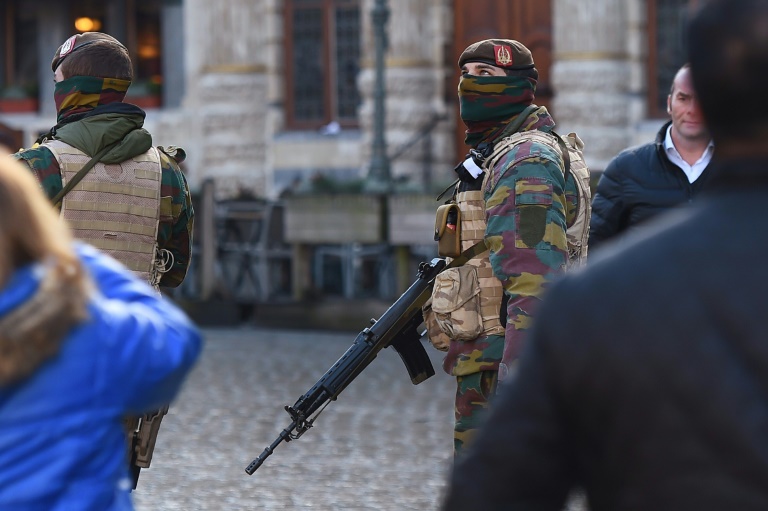 Les habitants de Bruxelles, capitale de la Belgique mais aussi de l'Europe, vivaient un lundi inédit, placé sous la menace terroriste, au son intermittent des sirènes de police et sous la surveillance étroite de militaires lourdement armés, mais bien décidés à ne pas céder à la peur.Sur la Grand-Place, un blindé de la Défense nationale est stationné face à l'Hôtel de ville gothique. Des soldats en tenue de camouflage, armes automatiques au poing, quadrillent les artères commerçantes du centre-ville.