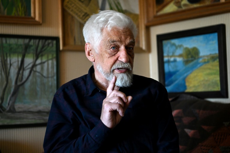Une couche de peinture blanche recouvre déjà la vitrine du magasin abandonné. Il y a quelques jours encore, on pouvait y voir dessinés un drapeau jaune et bleu, la devise de l'Ukraine et un slogan pacifiste. "Ils les ont effacés", peste Vladimir Ovtchinnikov, 84 ans. Dès qu'il sort de la voiture, le vieil artiste russe se dirige d'un pas énergique vers les trois taches blanches et, avec un crayon noir, recommence son ouvrage.