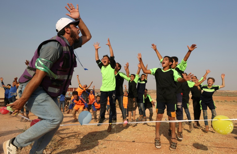 Afin d'éviter la chaleur infernale à l'heure du zénith, 120 garçons vivant dans une douzaine de camps près de la ville d'Idleb se sont retrouvés samedi peu avant le coucher du soleil pour des "Olympiades des tentes", organisées par une ONG syrienne.
