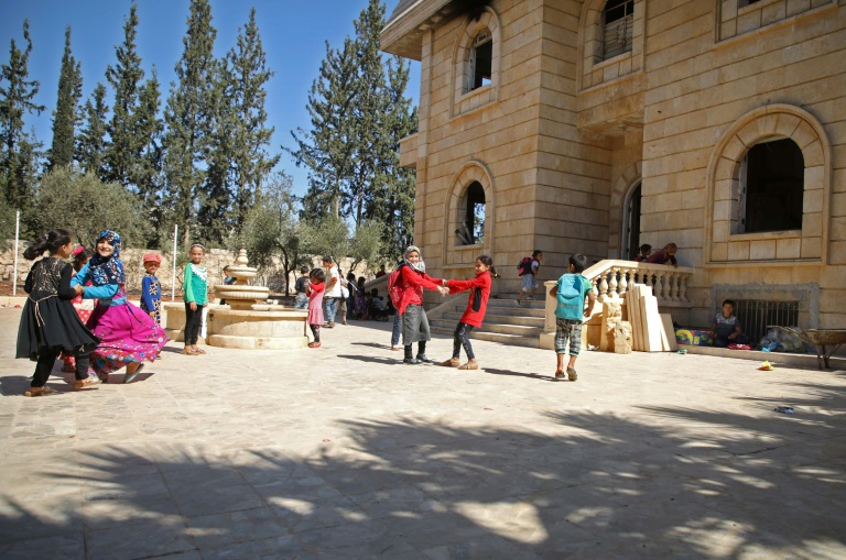 La plupart des écoliers, mais aussi leurs instituteurs, sont des déplacés, ayant fui la guerre qui faisait rage dans d'autres régions de Syrie, pour trouver refuge dans les territoires rebelles du nord-ouest syrien, selon un photographe collaborant avec l'AFP.