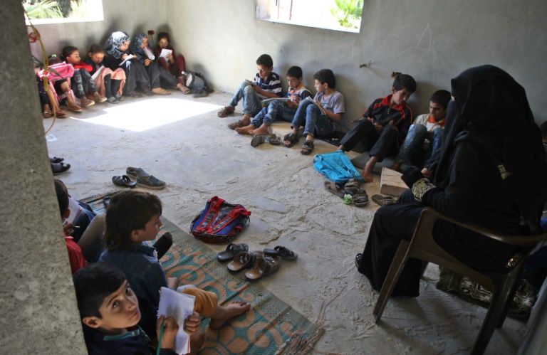 "Ce n'est pas une école, il n'y a pas de classes, ni de sièges, il n'y a rien, on est assis sur le sol", explique candidement Ali Abdel Jawad, écolier de 11 ans originaire de la Ghouta.