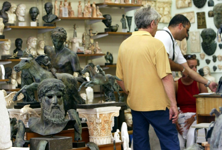 Dans une échoppe de souvenirs, le vendeur Konstantinos Marinakis se frotte les mains.