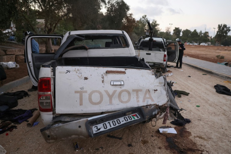À l'entrée du kibboutz Beeri, à moins de cinq kilomètres de la frontière avec la bande de Gaza, une pile de cadavres témoigne de l'ampleur de l'attaque à l'intérieur du village où plus d'une centaine d'habitants ont été tués, selon l'armée.