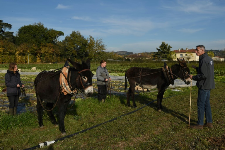 A la ferme-école, l'exercice frise la haute voltige: les baudets peuvent évoluer dans des couloirs d'à peine 20 cm. "Le percheron n'avance que par la répétition, l'âne retient la chose apprise pour la vie", serine M. Sachot. D'où l'intérêt pour Camille d'apprendre "à ne pas faire n'importe quoi avec Fidji", son ânon de deux ans acquis l'an dernier, explique-t-elle. La maraîchère girondine est ici "pour faire (son) éducation", mais aussi son marché. Elle repartira sans doute avec l'âne Eratxu, moyennant 2.500 euros (hors taxe). Une bagatelle au regard des dizaines de milliers d'euros que lui coûterait l'achat d'un tracteur tout équipé.