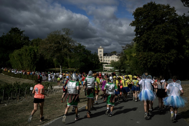 Après deux ans d'absence en raison de la pandémie de Covid-19, 8.500 coureurs, la plupart déguisés et déambulant au rythme des bandas, ont pris part à cette course à l'humour potache, qui traverse les vignes des grandes appellations viticoles - Pauillac, Saint-Julien, Haut Médoc et Saint- Estèphe - de la rive gauche du Bordelais.