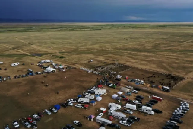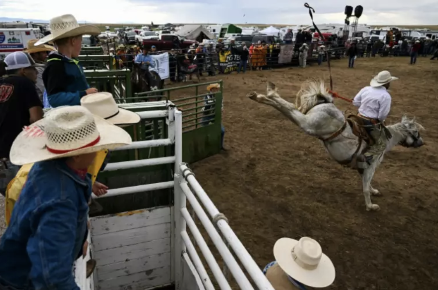 Dans ce minuscule bourg de l'Ouest américain, le public vibre au rythme des coups de sabot que lance un des chevaux contre une clôture blanche.
