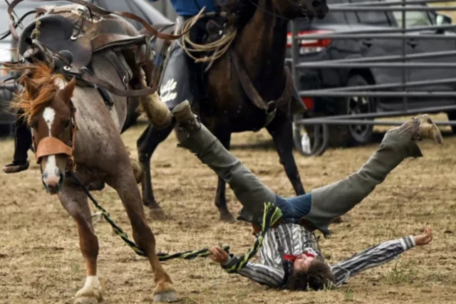 Planté sur la selle, un cow-boy tente périlleusement de s'agripper avec une seule main tandis que l'animal sauvage rue et se cabre. Un seul objectif: ne pas se faire débarquer durant au moins huit secondes. Des dizaines de vaillants tentent de répéter la prouesse, les chutes sont nombreuses.