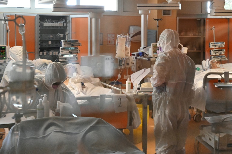 Au service des soins intensifs de l'hôpital Casalpalocco près de Rome, médecins et infirmiers se pressent en silence autour de malades du coronavirus, immobiles sur leurs lits entourés de machines surveillant leurs signes vitaux.