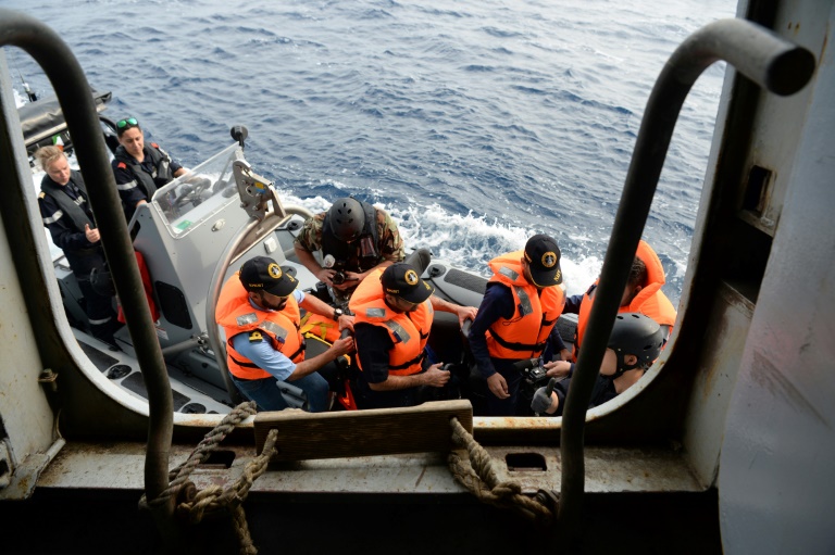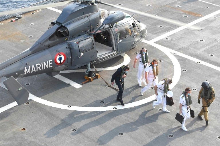 Aussitôt à bord du Mistral, ils sont briefés par leurs homologues français sur l'état d'un homme gravement blessé, puis guidés dans le dédale du bâtiment censé être un navire civil dans le cadre de cette simulation.