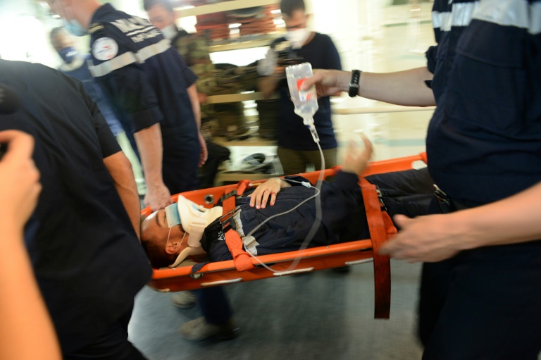 Bientôt ils sont auprès d'un militaire français étendu au pied d'un escalier, feignant d'être un civil blessé, tibia droit soi-disant fracturé, baignant dans un sang factice. Militaires iraniens et français l'examinent, s'accordent en anglais sur les premiers soins à lui apporter, bandent sa blessure, le perfusent puis décident de son évacuation à laquelle les Iraniens procèdent en direction de leur frégate. L'exercice n'aura pas duré plus d'une vingtaine de minutes.