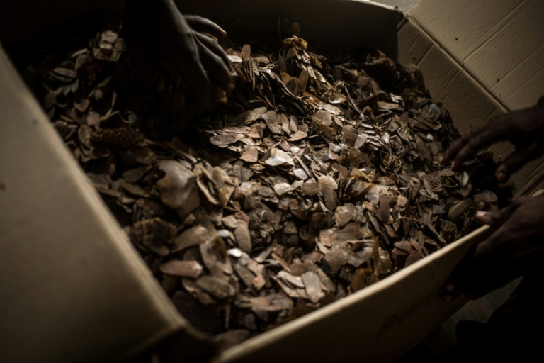Quelque part dans les bureaux du parc, il faut pousser une porte de métal pour avoir un aperçu de l'ampleur du trafic: des caisses sur des étagères débordent d'écailles qui étaient destinées au marché chinois. Un butin estimé à plusieurs centaines de milliers d'euros. "Ici, beaucoup de gens font ça", assure un chasseur de la région sous couvert de l'anonymat. "Un pot d'écailles de pangolin, ça se vend environ 30.000 francs CFA (45 euros). S'il y avait du travail ici, les gens ne chasseraient pas", assène-t-il.