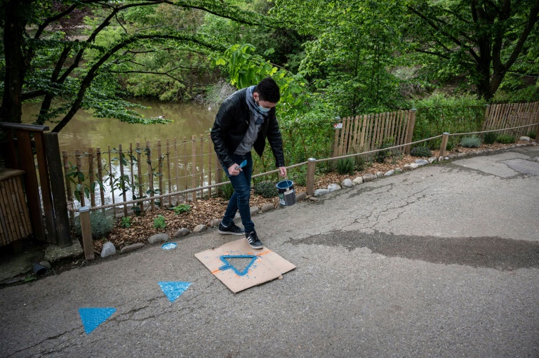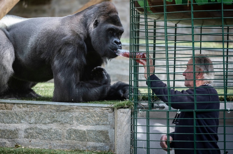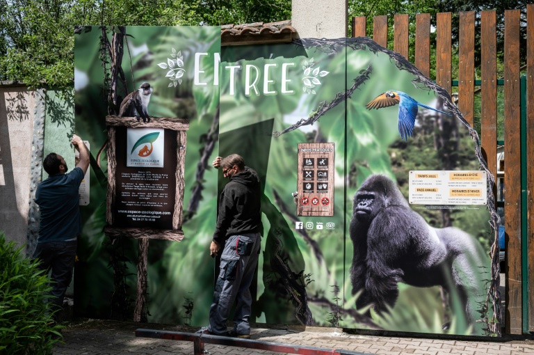 "Tu vas avoir des visiteurs; tu vas pouvoir leur faire peur": au milieu d'un enclos XXL, protégé par une cage en fer, Pierre Thivillon plaisante avec un gorille avachi, à quelques heures de pouvoir rouvrir au public son parc zoologique de Saint-Martin-la-Plaine (Loire).
