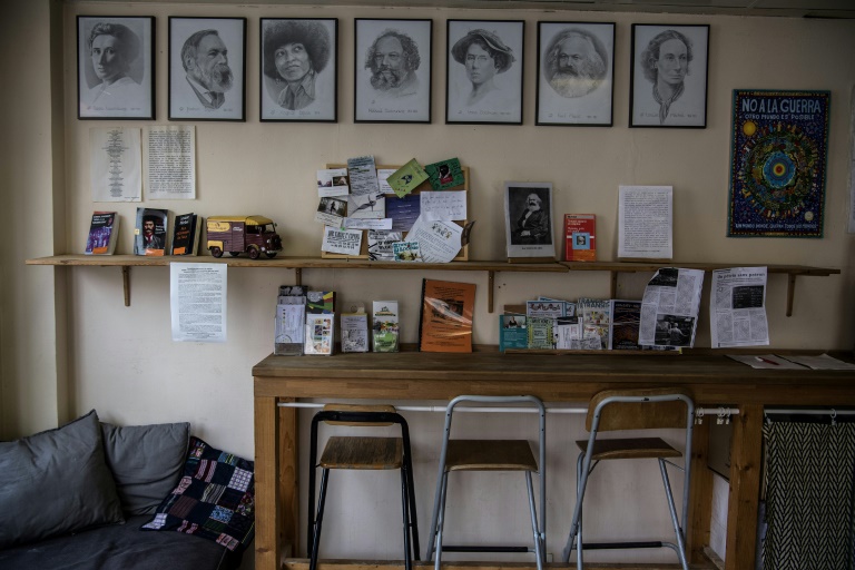Au mur, des portraits de Rosa Luxemburg, Karl Marx, Mikhail Bakounine ou Angela Davis l'accueillent, surplombant une étagère où sont disposés des ouvrages de Louise Michel. Le café est à disposition, à prix libre. Dans les vitrines, les sandwiches portent les noms de Marx, Engels, Zapata...