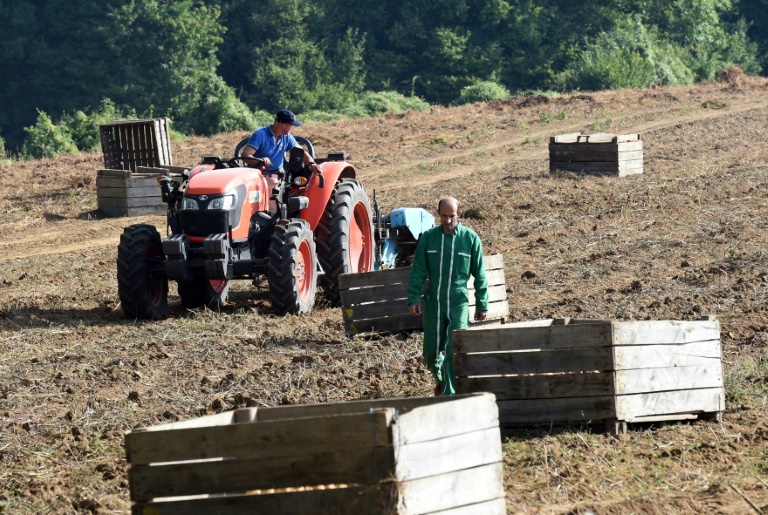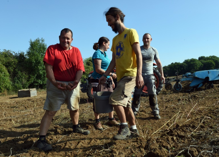 Sous un soleil de plomb en cette fin août, une vingtaine de personnes ramassent des pommes de terre: sur le champ, des détenus d'humeur joyeuse côtoient des encadrants et leurs jeunes enfants. Olivier, ancien agriculteur qui purge les derniers mois de sa peine de sept ans, raccompagne les bambins à la ferme en tracteur, fier comme Artaban.