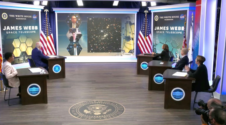 Lundi, une première image prise par le télescope, illustrant les temps lointains du cosmos, a été dévoilée, en présence du président américain Joe Biden, qui a salué un moment "historique".