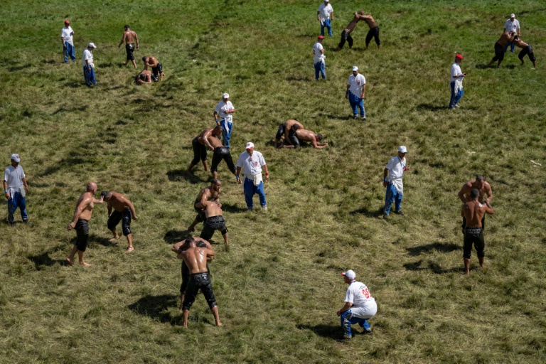 Le torse lustré, sanglés dans une culotte de peau, les "pehlivans" (lutteurs) entrent dans l'arène sous un soleil de plomb et les vivats des gradins en se frappant les cuisses à l'énoncé de leur nom. Tous les débuts juillet, le "Kirkpinar" (tournoi) d'Edirne, dans le nord-ouest de la Turquie, perpétue la lutte ancestrale des pehlivans dans le pur respect des traditions ottomanes qui imposent un corps puissant, massif et agile à la fois. Et frotté à l'huile d'olive malgré son prix prohibitif.