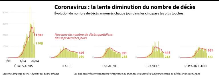 Le Royaume-Uni, un des pays les plus touchés en Europe par la pandémie avec 21.092 morts au total dans ses hôpitaux, dont 82 soignants, et probablement des milliers de plus dans ses maisons de retraite, semble observer la décrue tant attendue, avec 360 décès de plus annoncés lundi, soit le plus faible bilan depuis fin mars.