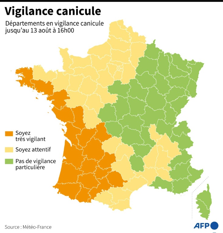 La chaleur va continuer à sévir samedi sur une grande partie de la France, avant l'arrivée en soirée d'orages et de pluies par l'ouest, des intempéries qui pourraient aider les pompiers toujours en lutte contre les incendies en Gironde et dans les Landes.