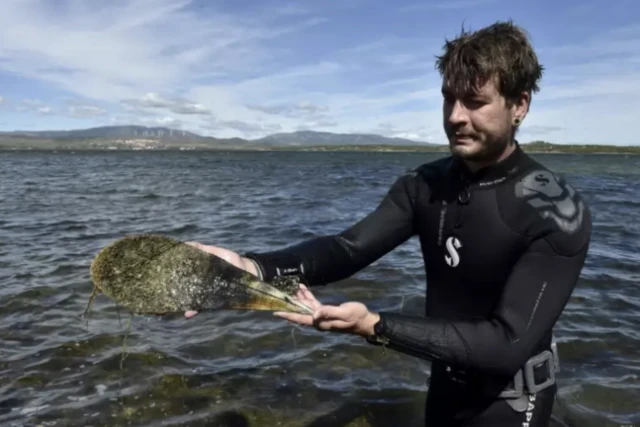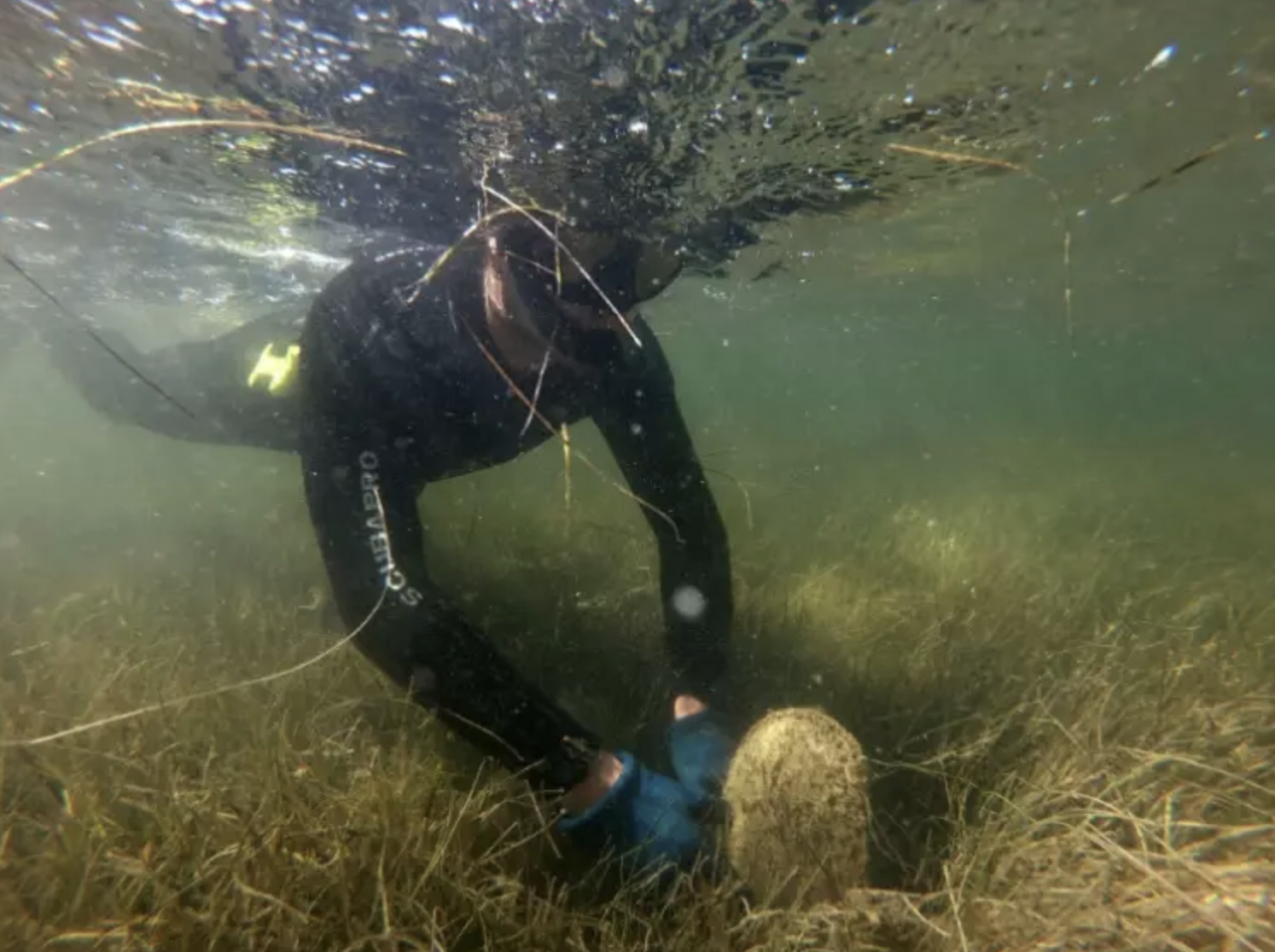 Flanqué d'un masque et d'une combinaison de plongée, Titouan Morage, ingénieur d'études au Centre de recherches insulaires et observatoire de l'environnement (CRIOBE) de Perpignan, scanne attentivement le fond de l'étang de Salses-Leucate, situé à cheval entre les départements de l'Aude et des Pyrénées-Orientales.