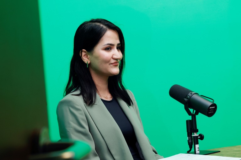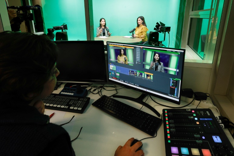 Dans ce studio situé dans le nord de la capitale française, Marina Golbahari, célèbre actrice afghane devenue présentatrice de Bégum TV, débat sur le plateau du sujet du jour avec une journaliste afghane également en exil, Diba Akbari.