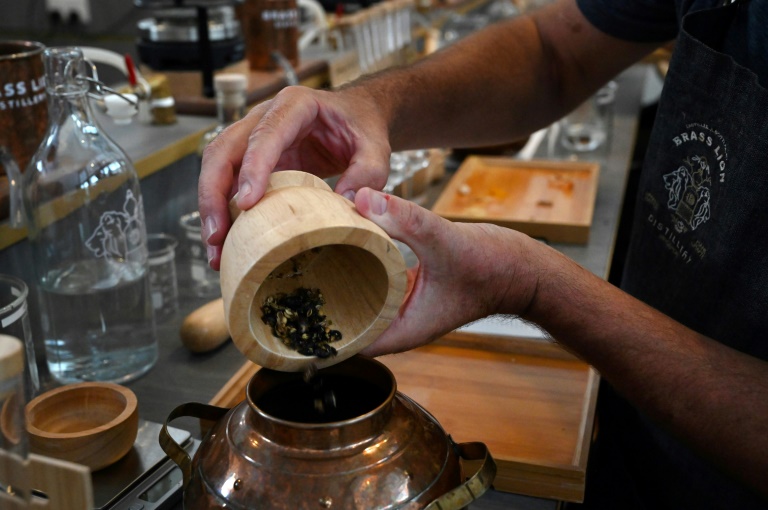 Daniel Lim a distillé un gin à base de citronnelle, de feuilles de citron kaffir et trois petits morceaux de piment oeil d'oiseau. "J'ai voulu essayer une saveur singapourienne", explique le jeune homme de 30 ans à l'AFP. "Et ça donne un effet wasabi, ça monte directement au nez", constate-t-il.