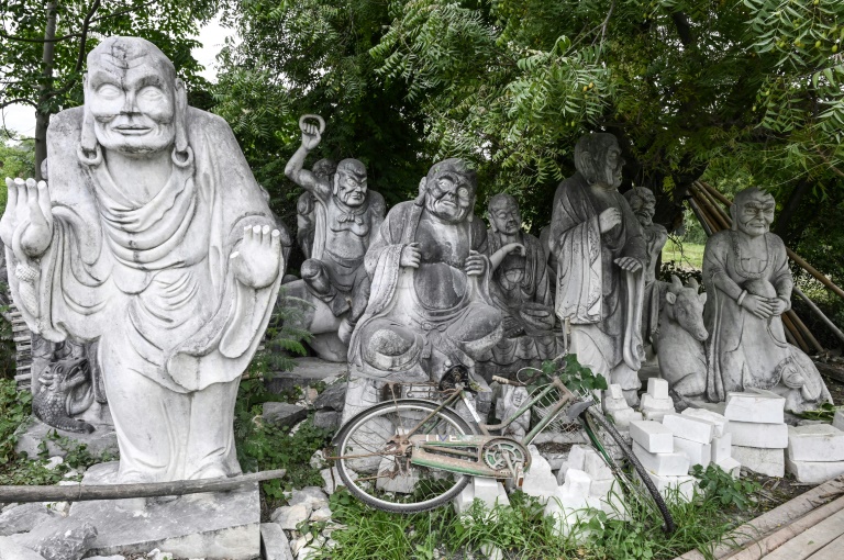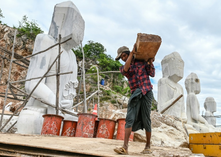 Parmi ses clients, un temple bouddhiste pour qui il termine une sculpture de félin qui gardera bientôt l'entrée d'une pagode. "Ici, tout le monde dépend des carrières de marbre", raconte-t-il à l'AFP, le corps recouvert d'une fine poudre blanche.