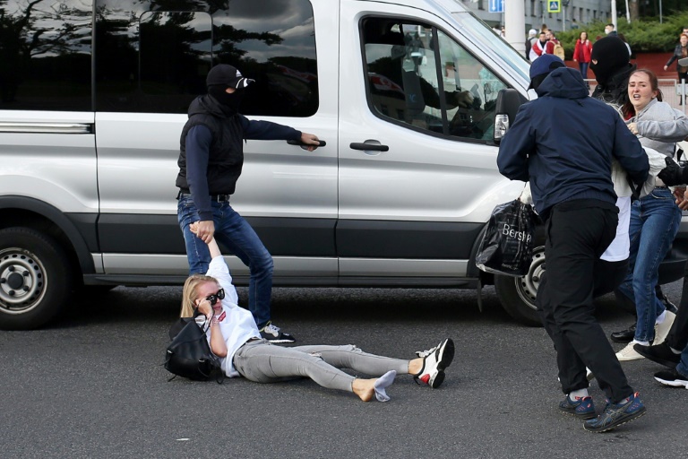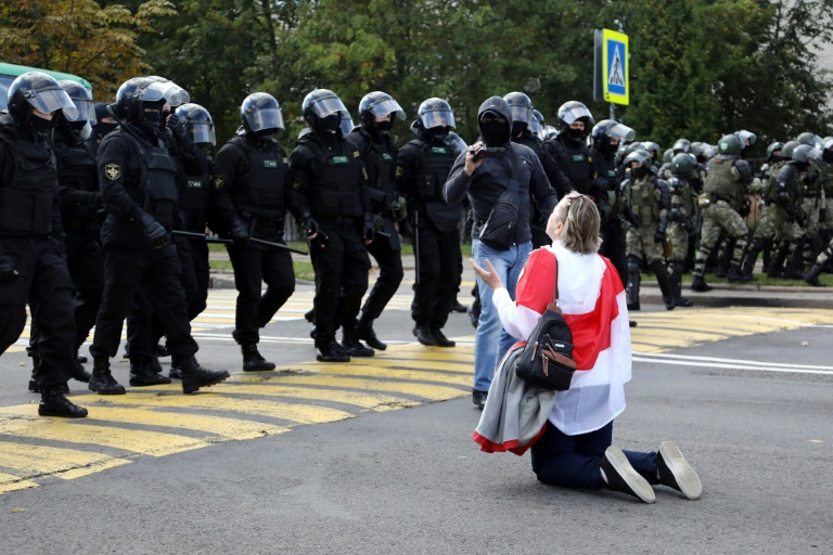 L'opposition, qui a fait descendre chaque weekend depuis la présidentielle du 9 août plus de 100.000 personnes dans les seules rues de la capitale, a fait une nouvelle fois face dimanche à un déploiement massif des forces de sécurité, équipées de blindés et de canons à eau, notamment devant la présidence où les manifestants ont tenté de se rendre avant d'être bloqués par la police.