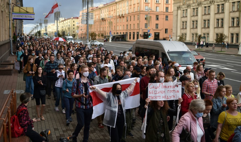 La mobilisation semblait aussi forte que lors des deux dimanche précédents, lorsque quelque 100.000 personnes ont défilé dans la capitale bélarusse, un record dans l'histoire du pays. M. Loukachenko, 66 ans dont 26 à la tête du Bélarus, fait face à des protestations quotidiennes depuis la présidentielle contestée du 9 août, qu'il clame avoir remporté avec 80% des voix tandis que ses détracteurs dénoncent des fraudes.