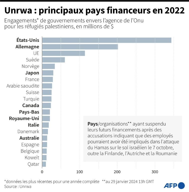Plusieurs pays ont suspendu leur financement après qu'Israël a accusé 12 des 30.000 employés régionaux de l'Unrwa d'implication dans l'attaque du Hamas le 7 octobre.