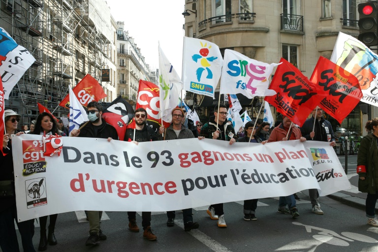De nombreux élus LFI, PS et PCF du département ont pris part au cortège composé d'enseignants, élèves et de leurs parents, a constaté une journaliste de l'AFP.