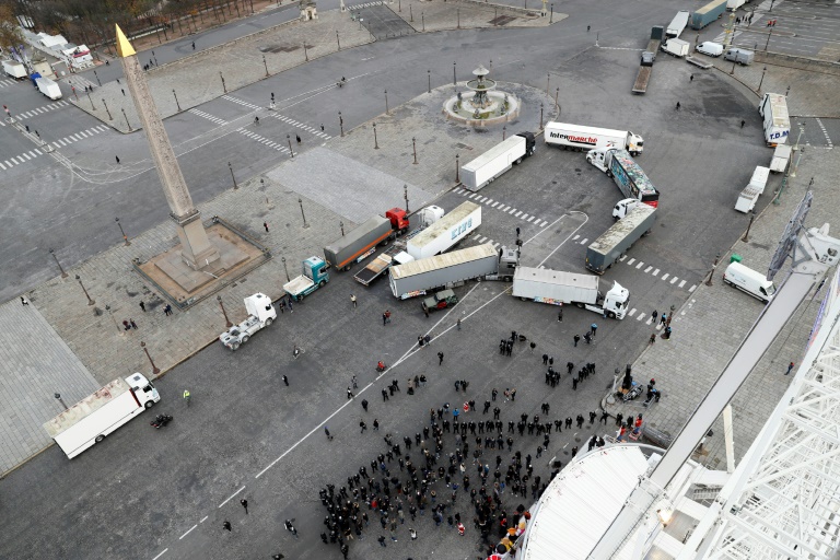 Au moins 113 poids lourds s'étaient réunis aux abords et sur la place de la Concorde, un axe majeur à Paris, à partir de 06H00. Une manifestation surprise, alors que Marcel Campion avait seulement annoncé qu'il tiendrait à 12H00 une conférence de presse devant la Grande roue, sur la même place.