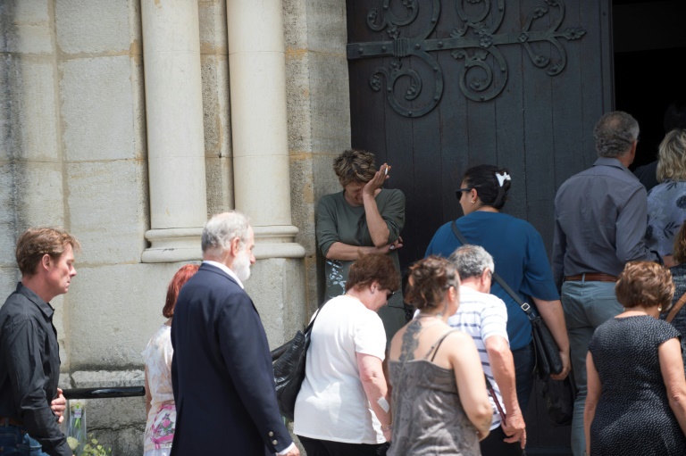 Les abords de l'église avaient été interdits de stationnement dès 8H00 et fermés à la circulation. Les habitants, seuls ou en famille, avaient déposé des gerbes blanches sur les marches et signé les registres de condoléances.