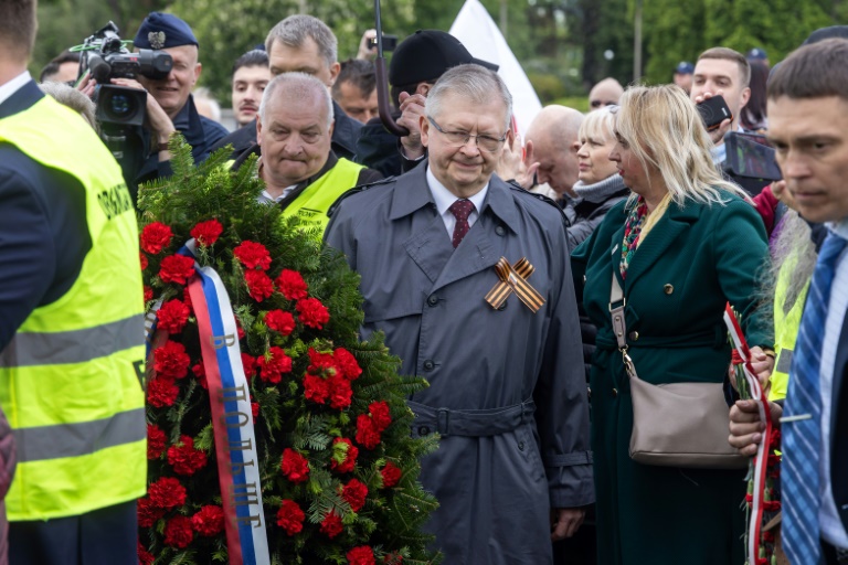 Ils ont scandé "Terroristes" au moment où l'ambassadeur de Russie en Pologne, Sergueï Andreïev, marchait vers le monument avec une couronne pour commémorer la victoire des Soviétiques sur les nazis.