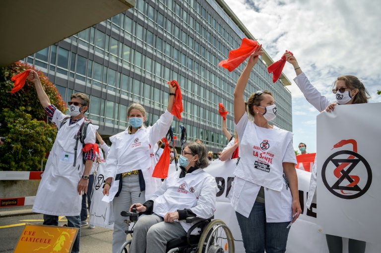 Environ 200 professionnels de la santé ont manifesté samedi devant les bâtiments de l'Organisation mondiale de la santé (OMS) à Genève pour demander que les autorités de tous les pays reconnaissent les risques sanitaires liés au changement climatique et agissent pour les contrer.