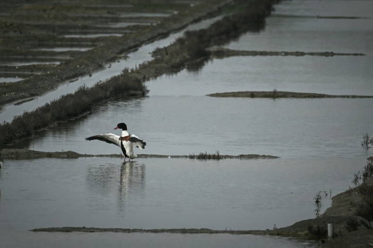 Hérons cendrés, canards, oies migratrices se côtoient dans des marais salants de l'île de Ré. (Photo : AFP)