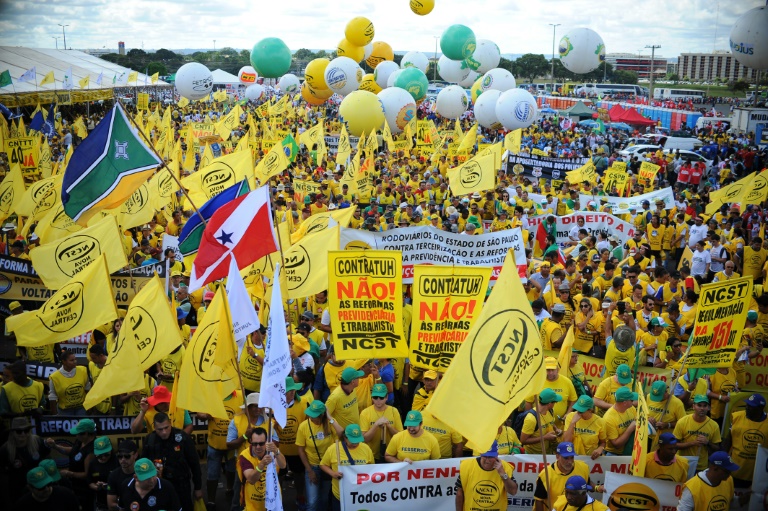 Lassés des scandales de corruption à répétition, plusieurs dizaines de milliers de Brésiliens ont rejoint mercredi Brasilia pour manifester, à l'appel des syndicats, afin d'exiger le départ du président Michel Temer, accusé d'avoir autorisé des pots-de-vin, et la fin des mesures d'austérité.