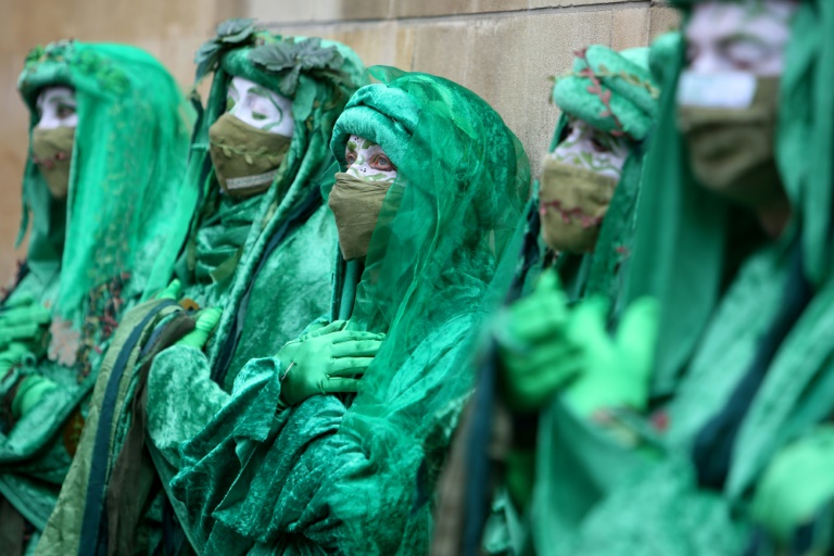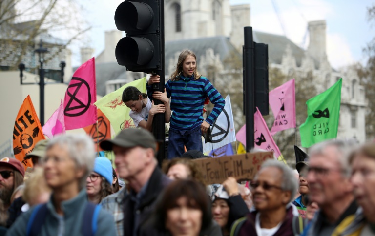 La manifestation dans le centre de la capitale britannique a été organisée à l'appel du groupe écologiste Extinction Rebellion (XR), connu depuis sa création en 2018 pour ses actions coup de poing, pendant lesquelles par exemple des militants se sont juchés sur une rame de métro ou sur un avion.